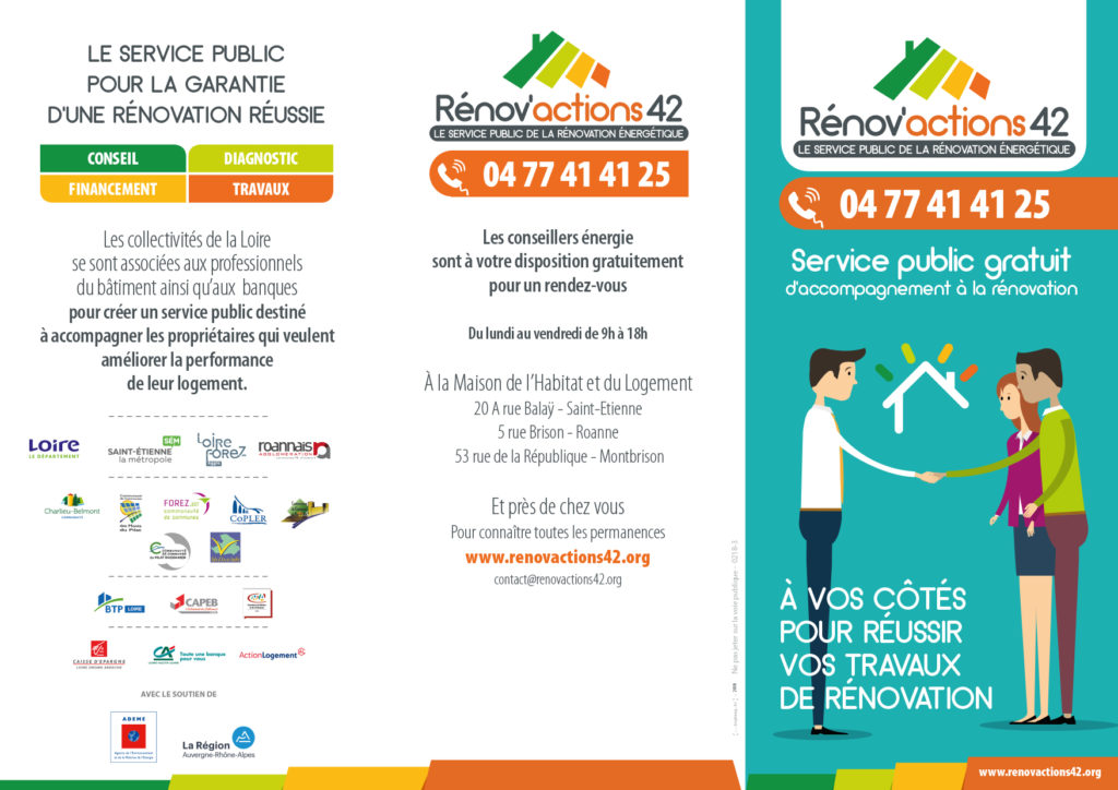 Rénov'actions42 est un service public créé par les collectivités de la Loire en partenariat avec les professionnels du bâtiment et les banques. Les conseillers de Rénov'actions42 vous accompagnent gratuitement et vous aident à monter votre projet de rénovation de votre habitat afin d’en améliorer sa performance énergétique : conseil, diagnostic, travaux, financement. Ils vous aident à faire les meilleurs choix.